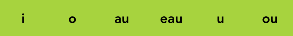 o – au – eau – These vowels sound like the “o” in the word “nose,” but it is actually almost half the sound. You have to try to chop off the last part of the long English “o.”
