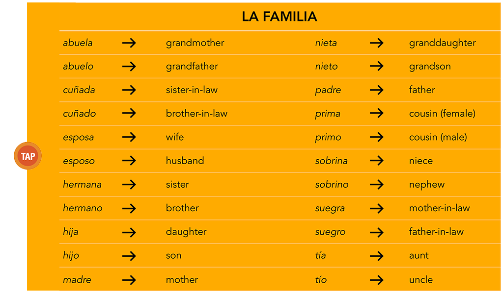 The following is a list of useful vocabulary related to the family: